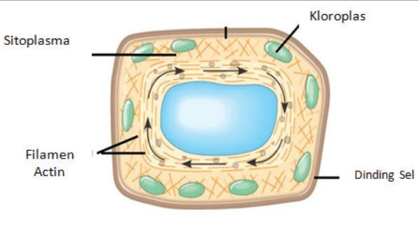 Gerak pertumbuhan daun dan gerak rotasi sitoplasma pada sel-sel daun Hydrilla verticillata.